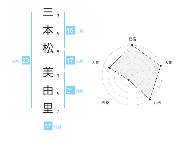 三本松 美由里さんを姓名の画数から五運を鑑定