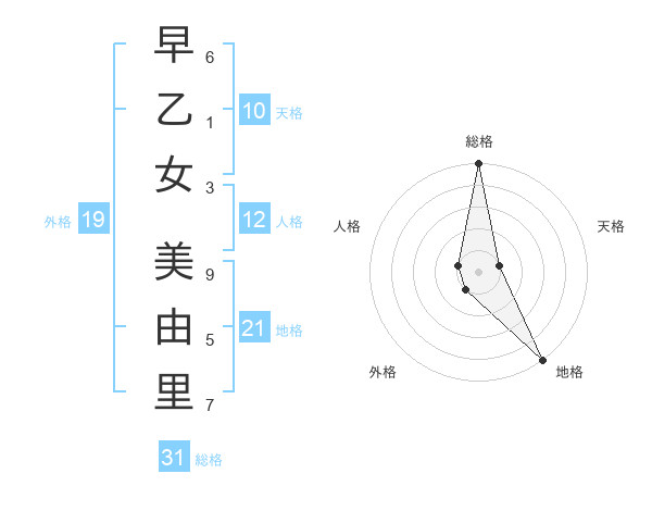 早乙女 美由里さんの総格は31画の5点!