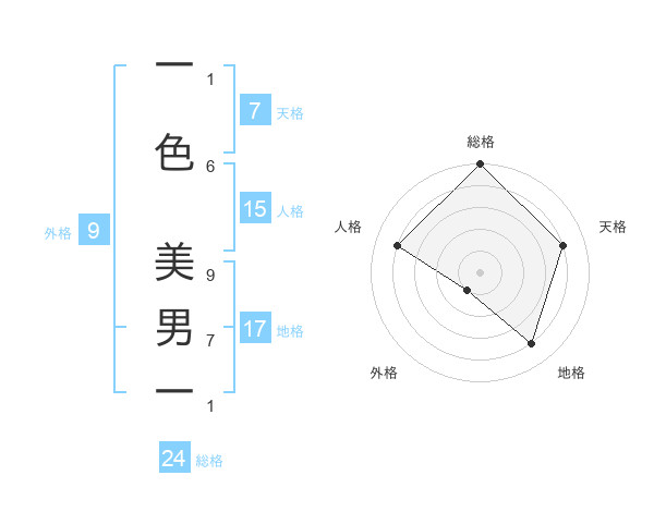 一色 美男一さんの総格は24画の5点!