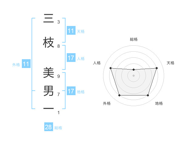 三枝 美男一さんの外格は11画の4点!