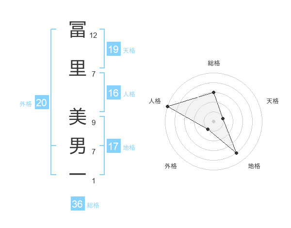 冨里 美男一さんを姓名の画数から五運を鑑定