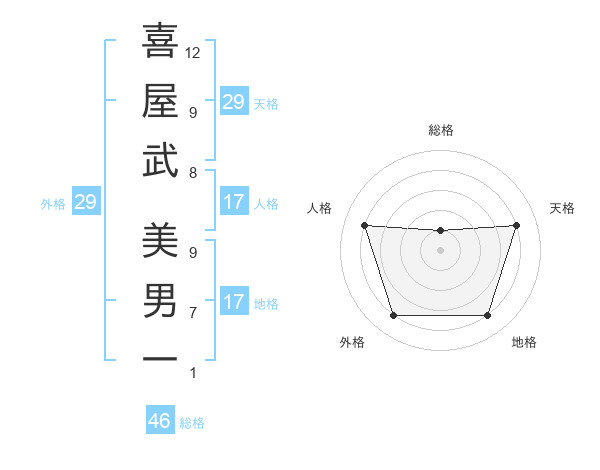喜屋武 美男一さんを姓名の画数から五運を鑑定