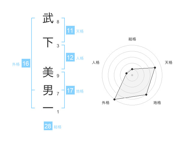 武下 美男一さんの外格は16画の5点!
