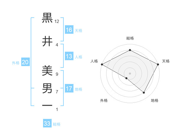 黒井 美男一さんを姓名の画数から五運を鑑定