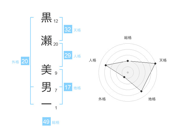 黒瀬 美男一さんを姓名の画数から五運を鑑定