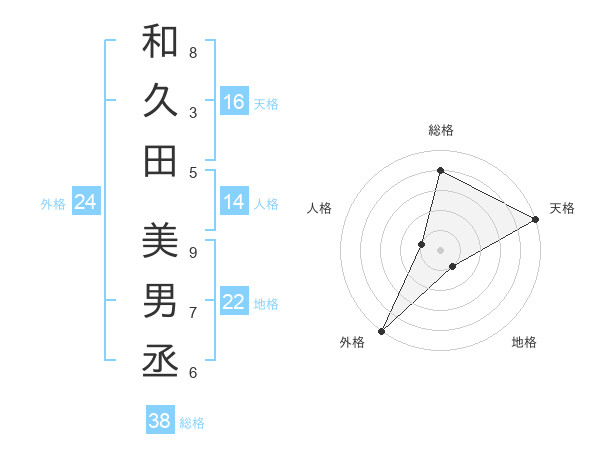 和久田 美男丞さんの総格は38画の4点!