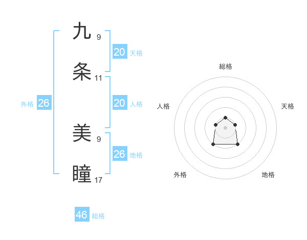 九条 美瞳さんを姓名の画数から五運を鑑定