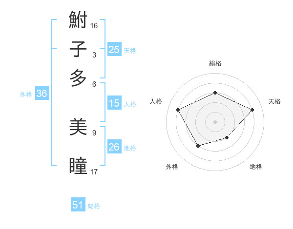 鮒子多 美瞳さんを姓名の画数から五運を鑑定