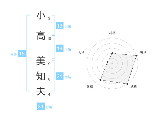 小高 美知夫さんを姓名の画数から五運を鑑定