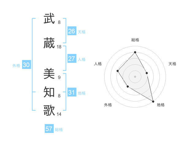 武蔵 美知歌さんの総格は57画の4点!
