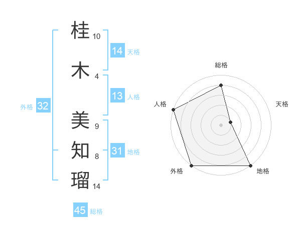 桂木 美知瑠さんの外格は32画の5点!