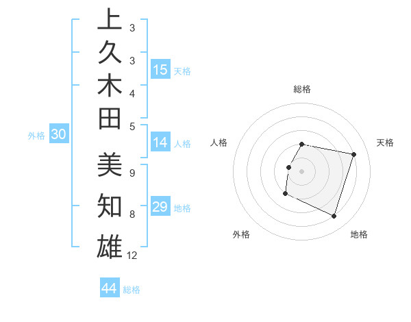 上久木田 美知雄さんを姓名の画数から五運を鑑定