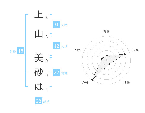 上山 美砂はさんを姓名の画数から五運を鑑定