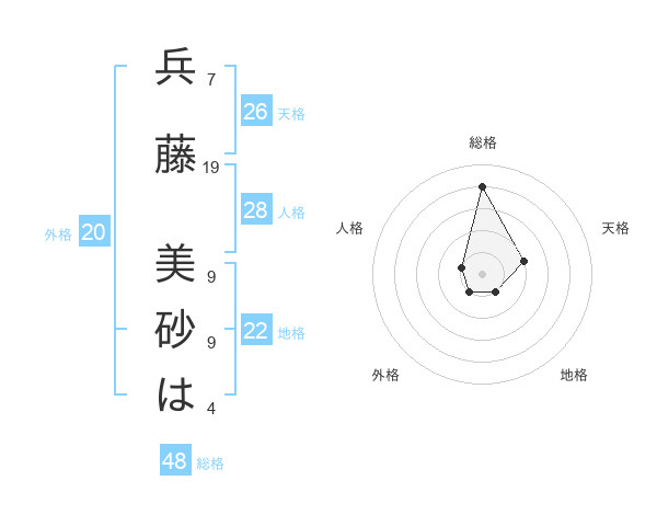 兵藤 美砂はさんの総格は48画の4点!
