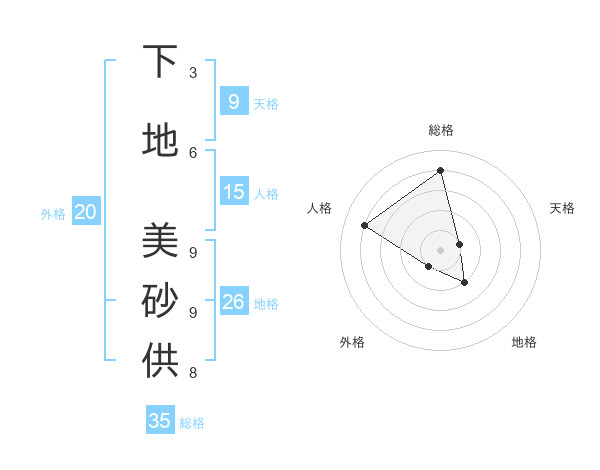 下地 美砂供さんを姓名の画数から五運を鑑定
