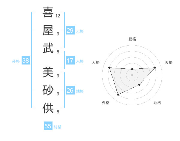 喜屋武 美砂供さんの外格は38画の4点