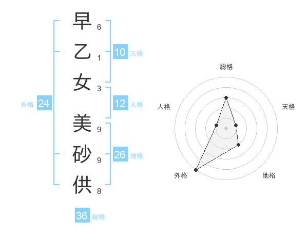 早乙女 美砂供さんを姓名の画数から五運を鑑定