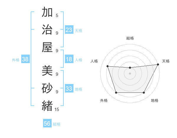 加治屋 美砂緒さんを姓名の画数から五運を鑑定