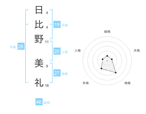 日比野 美礼さんを姓名の画数から五運を鑑定