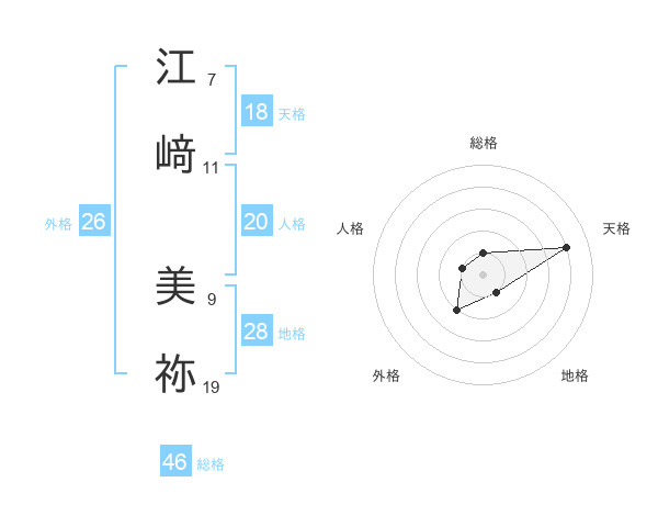 江﨑 美祢さんを姓名の画数から五運を鑑定