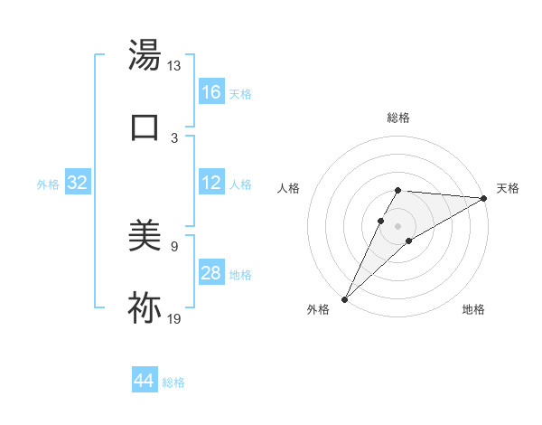 湯口 美祢さんを姓名の画数から五運を鑑定
