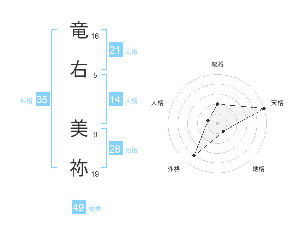 竜右 美祢さんを姓名の画数から五運を鑑定