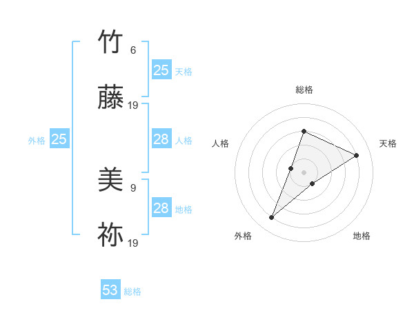 竹藤 美祢さんの地格は28画の1点!