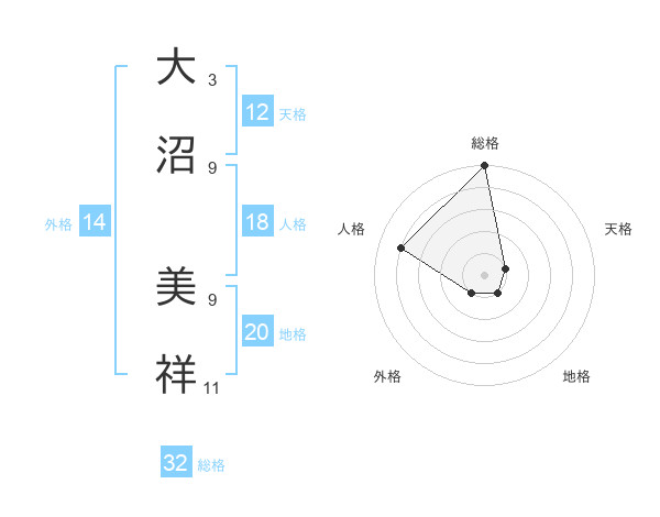 大沼 美祥さんを姓名の画数から五運を鑑定