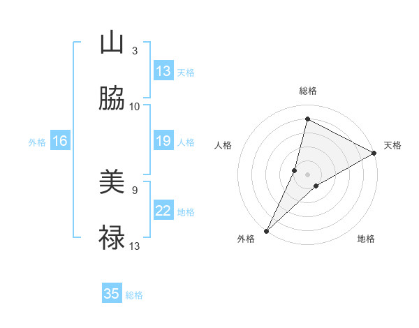 山脇 美禄さんの天格は13画の5点!