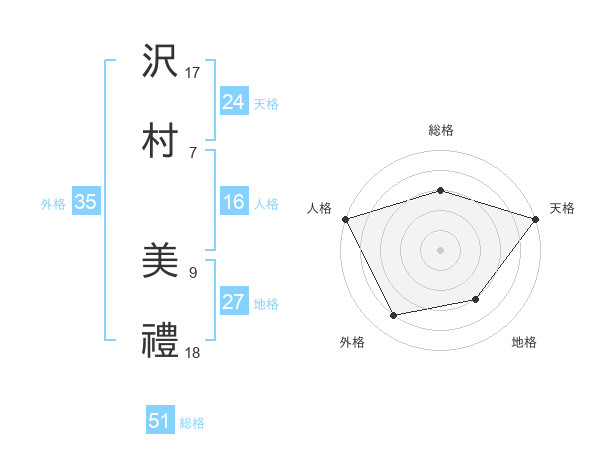沢村 美禮さんを姓名の画数から五運を鑑定