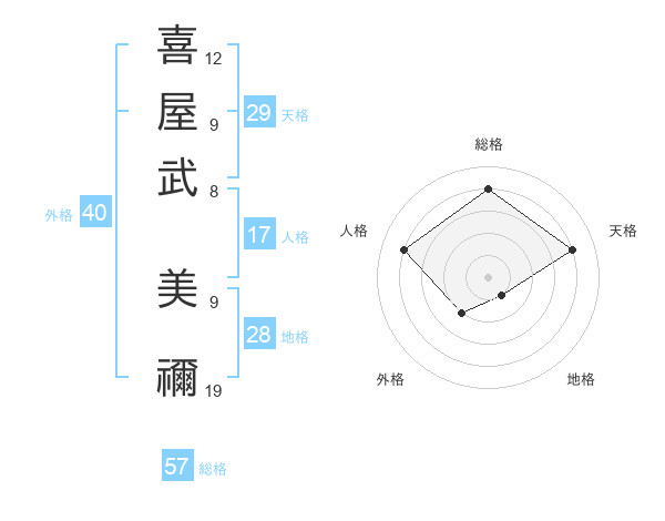 喜屋武 美禰さんの総格は57画の4点!