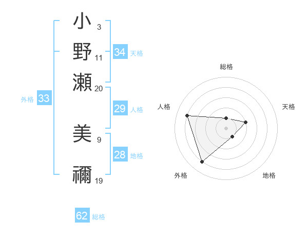 小野瀬 美禰さんを姓名の画数から五運を鑑定