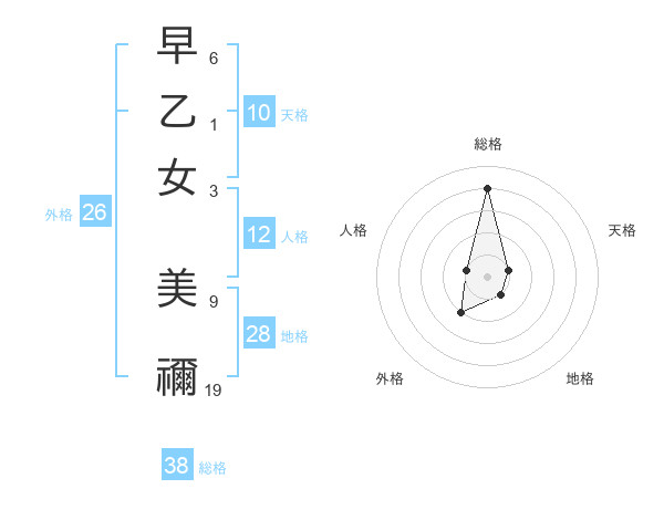 早乙女 美禰さんを姓名の画数から五運を鑑定