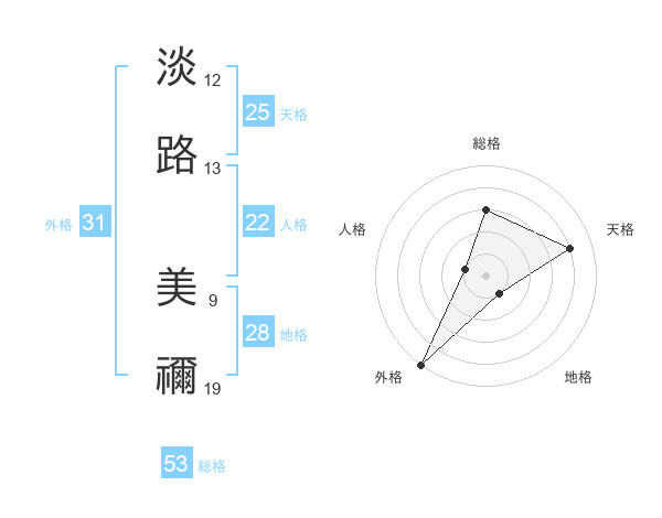 淡路 美禰さんを姓名の画数から五運を鑑定