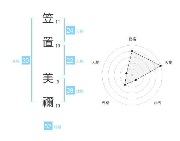笠置 美禰さんを姓名の画数から五運を鑑定