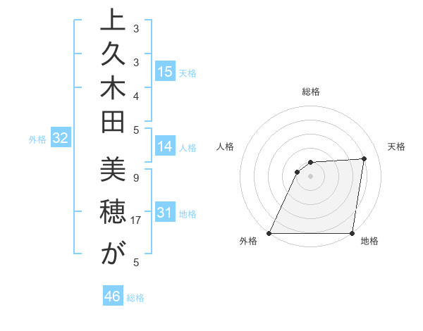 上久木田 美穂がさんを姓名の画数から五運を鑑定