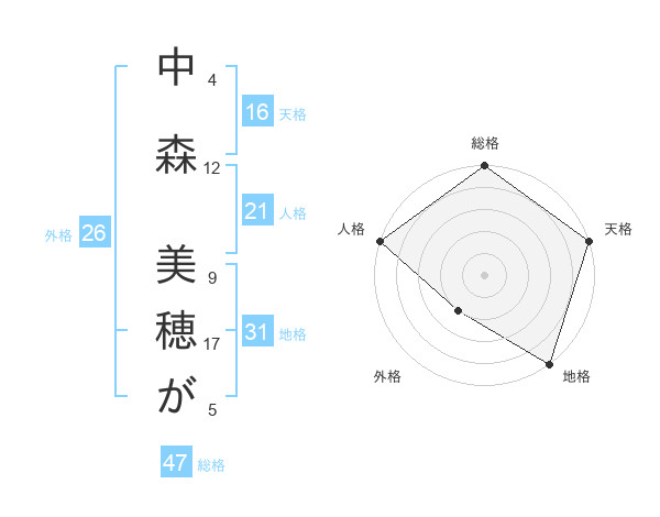 中森 美穂がさんを姓名の画数から五運を鑑定