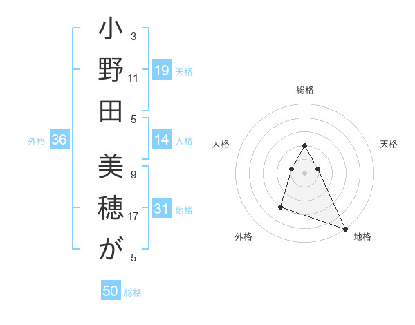 小野田 美穂がさんの総格は50画の2点