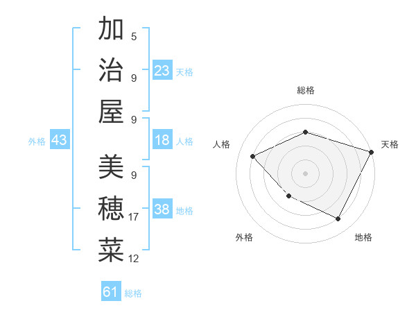 加治屋 美穂菜さんを姓名の画数から五運を鑑定