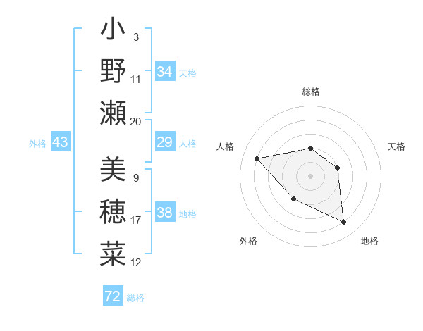 小野瀬 美穂菜さんを姓名の画数から五運を鑑定