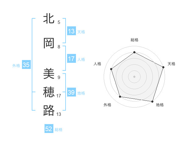 北岡 美穂路さんを姓名の画数から五運を鑑定