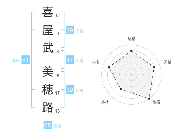喜屋武 美穂路さんの外格は51画の3点!