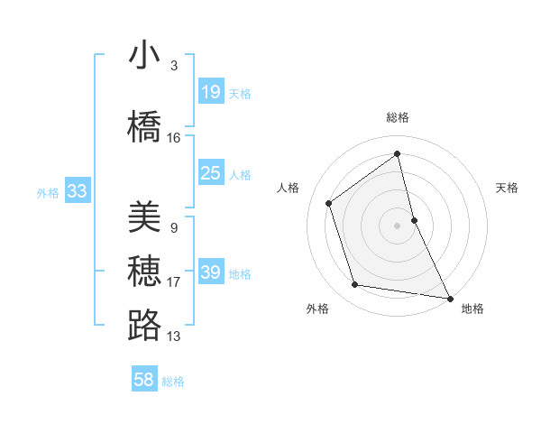 小橋 美穂路さんの総格は58画の4点!