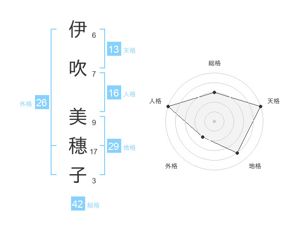 伊吹 美穗子さんを姓名の画数から五運を鑑定