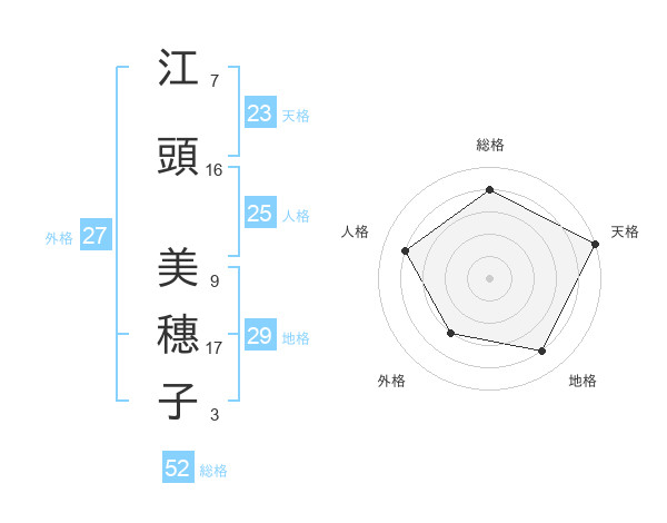 江頭 美穗子さんを姓名の画数から五運を鑑定