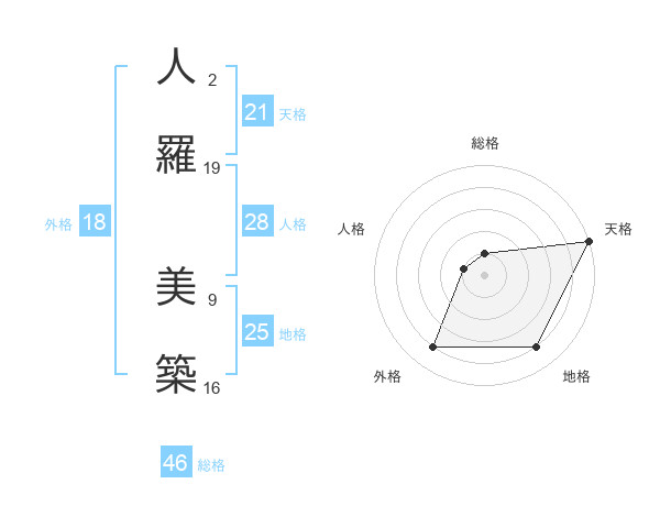 人羅 美築さんの天格は21画の5点!
