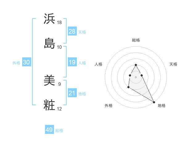 浜島 美粧さんを姓名の画数から五運を鑑定