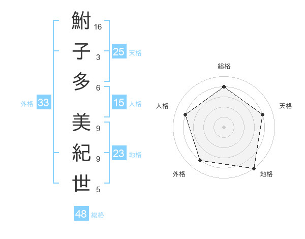 鮒子多 美紀世さんを姓名の画数から五運を鑑定