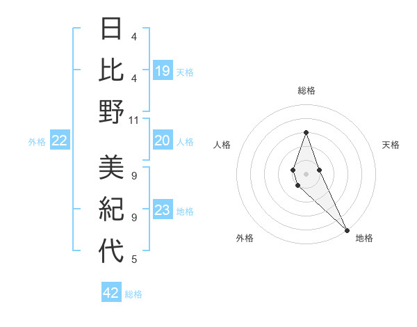 日比野 美紀代さんを姓名の画数から五運を鑑定