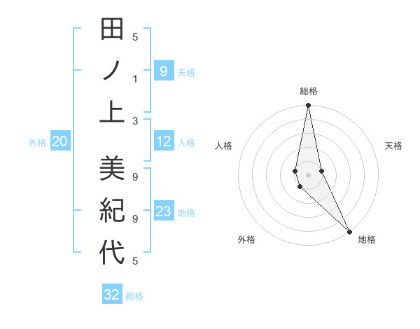 田ノ上 美紀代さんを姓名の画数から五運を鑑定
